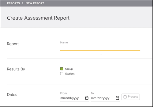 The reporting option under Assess allows you to run reports on any assessments that were assigned through the Assess tab. This includes the Beginning-of-the-Year assessments, Readiness Screeners and Diagnostic assessments, Benchmark assessments, End-of-Unit assessments, and Test Prep and Practice assessments. You will also be able to see all of the reports that you previously ran under the Reporting option.