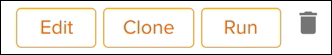 - In the list of reports, you will have the options to Edit, Clone, Run, or Delete (trash can icon) the report.