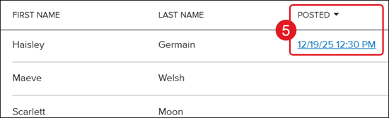 5. Click on the date/time stamp in the Posted column for the student.
