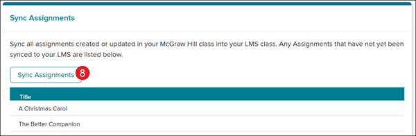 McGraw Hill will automatically check to see if there are any assignments that have not yet been completed synced to Google Classroom. These will be listed in the area below the Sync Assignments button.