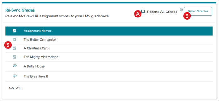 5. On the Re-Sync Grades tile, checkmark the assignment(s) that needs to be resynced.