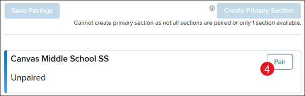 Note: The Create Primary Section button is grayed out until all Canvas sections are paired with a McGraw Hill class or if there is only one class for the course.
