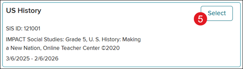 5. On the Course section pop-up, click Select on the course tile that matches the course you selected.