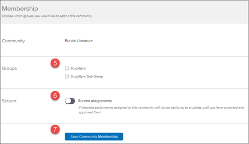 6. Click Save Community Membership.