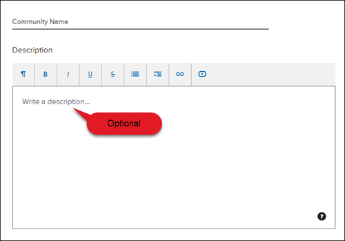 4. Enter the Community Name and Description, if desired,