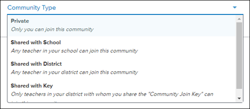 Shared with Key - Only teachers in your district with whom you share the 'Community Join Key' can join this community.