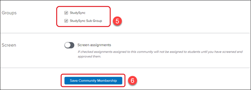Note: If checked assignments assigned to this community will not be assigned to students until you have screened and approved them.
