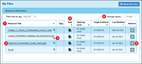 Manage instructional files using My Files to upload, organize, and share resources with students.