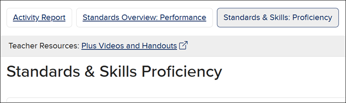 • In the course blade: View full details in Standards & Skills Proficiency Report.