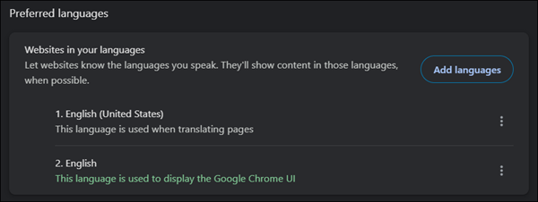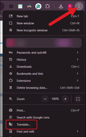 4. On the pop-up at the top of the browser, click the kebob icon and select Choose another language from the menu.