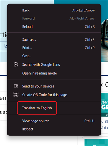 You can also bring up this option by clicking on the Translate icon in the address bar or by following the steps above. The Translate icon in the address bar will only show if the program is detected to be in a different language from your default that is set in the browser.
