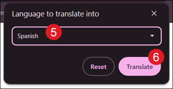Another option would be to click on the Customize kebob icon at the top-right of the page and select Translate from the menu.