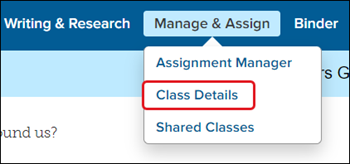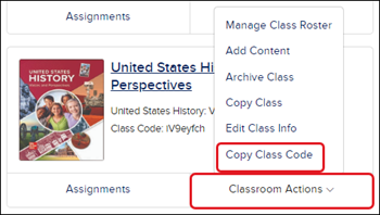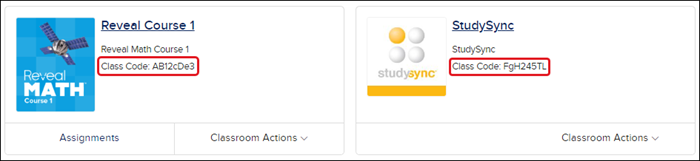 Note: If you're associated with a managed account, Class Codes are only available for classes that have been manually created by you. If the class was created for you by the district, you will not have access to the Class Code.