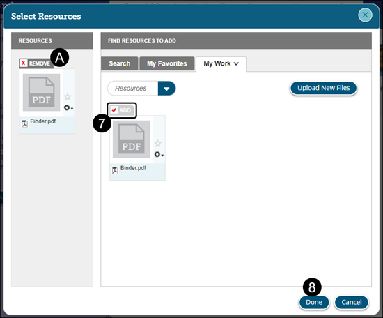 8. Click the Done button to attach the selected resource(s) to the assignment.
