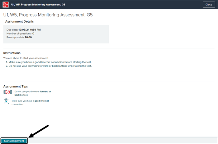 For more details on how to complete a test, refer to ConnectED - Take an Online Assessment.