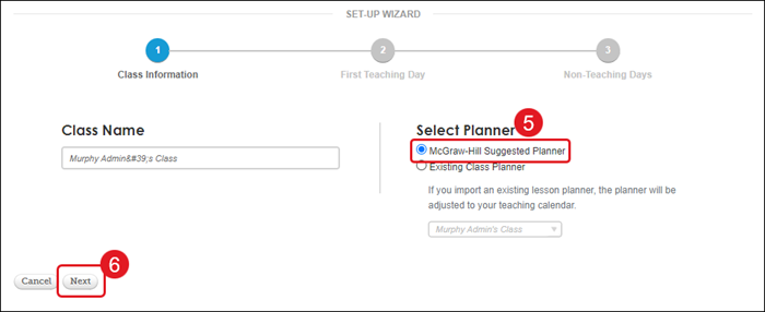 5. On the Set-Up Wizard, select the radio button next to the Planner you want to use for the class.