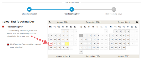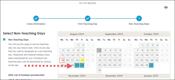 10. On the provided calendar year, select any Non-Teaching Days you want. You can also add these to your calendar at a later time.