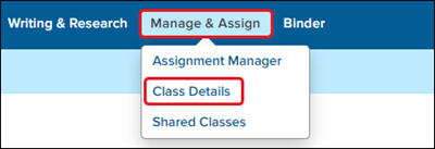 2. Hover over Manage & Assign and select Class Details from the menu.