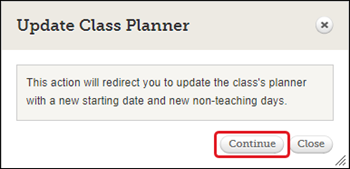 The Update Class Planner button allows teachers to navigate back to the Set-Up Wizard to select a new start date for their class. This button is currently only available for select districts that are having the issue of new classes getting attached to the previous year's planner.