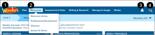 1. Click the Wonders logo to return to the Teacher Center Dashboard.