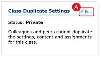 The Class Duplication Settings allows other teachers to duplicate your class settings when they set up their own ALEKS courses. This option is set to Private as default.