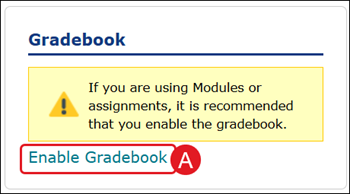 A. Click the Enable Gradebook link to turn it on.