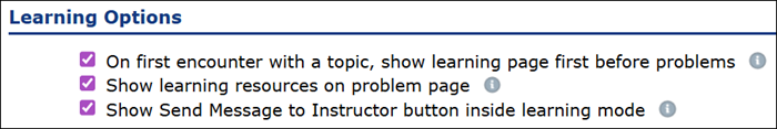 G. Check/uncheck the box next to the preferred Learning Options.