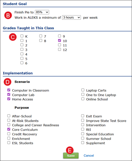 For an in-depth walkthrough of setting up the Gradebook, refer to the Classic ALEKS - Gradebook article.