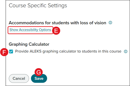 F. Check/uncheck the Graphing Calculator to include/remove the option for students.