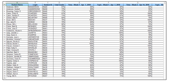 The ALEKS gradebook can be downloaded in Excel Format and saved. This is only applicable if you have enabled and set up the ALEKS Gradebook.