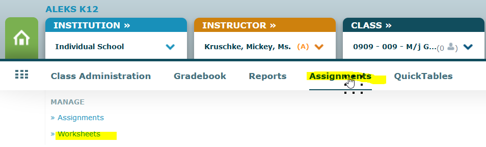 Create and print worksheets in ALEKS to support practice and instruction.