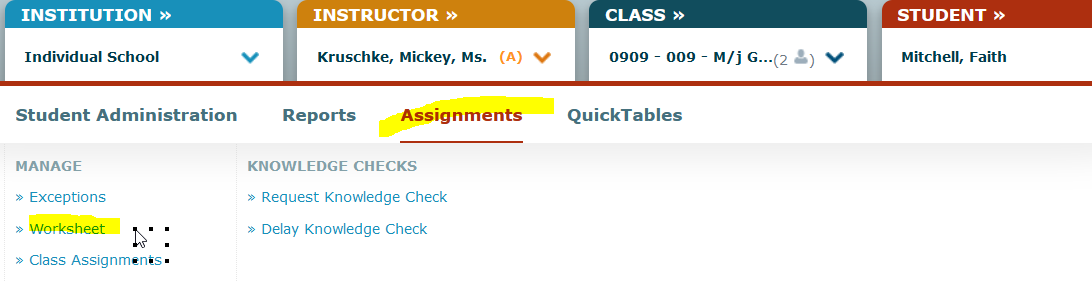 K-12 instructors can generate Worksheets for the entire class or on an individual student basis.
