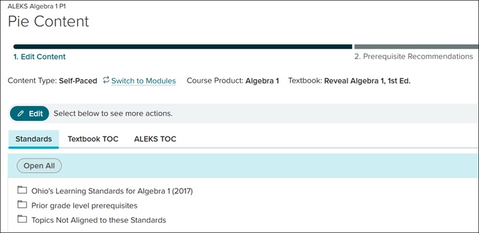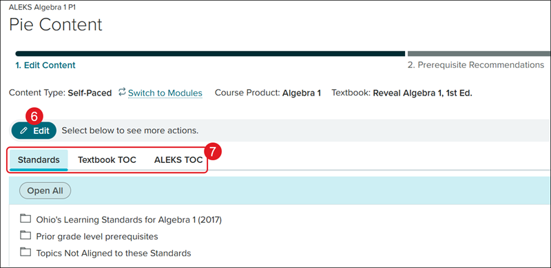 Learn how to set and edit self-paced ALEKS Pie content so students progress through adaptive topics aligned to course standards.