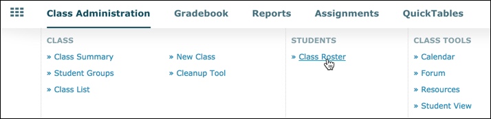 1. Hover over Class Administration and select Class Roster from the drop-down menu.