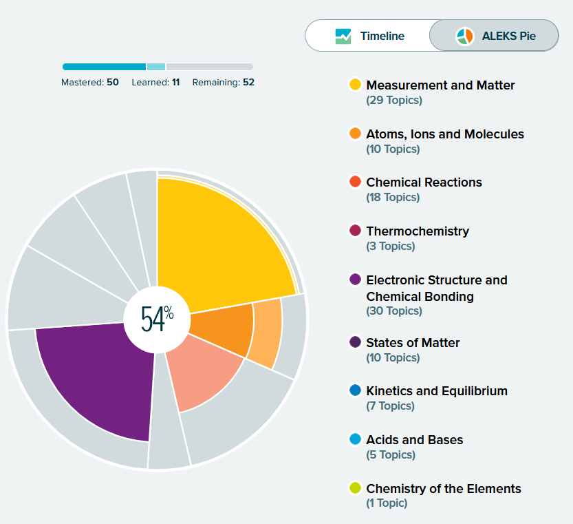 The number in the middle of the ALEKS Pie is a counter that represents the total number of topics a student has mastered and learned.